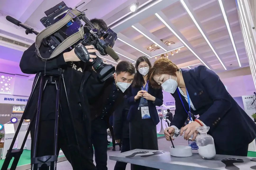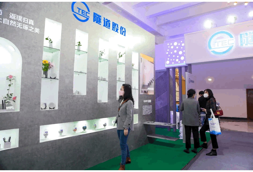 在展会现场,可以浮起来的泡沫混凝土、海绵城市透水砖、会发光的坐凳、可擦拭的易清洁涂料板、薄薄一片但能承重250KG的UHPC楼梯板,保温一体化墙板、泡沫混凝土墙板,以及用混凝土制作的棋盘、笔筒、盆栽、花瓶、摆件……隧道股份城建物资展示的万千姿态的混凝土材料,受到了市民的围观点赞。