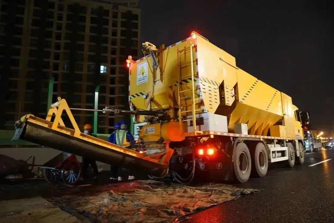 在上海内环线年轻化改造工程中,隧道股份城建物资为其量身定制了超快硬混凝土技术方案。与传统快硬水泥或早强剂相比,快硬混凝土在后期强度、裂缝控制以及体积稳定性方面具有明显优势,可以在短短几小时内助力内环工程现场完成钢筋绑扎、混凝土浇筑和养护、临时沥青摊铺等一系列工序,最快2小时即可达到通车条件,极大缩短施工窗口期,满足项目现场“快施工”的特殊需求。