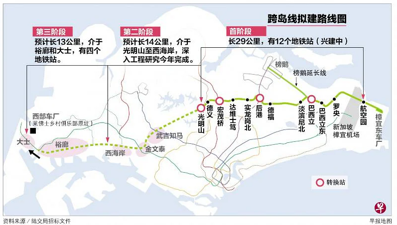 新加坡跨岛线(Cross Island Line)是新加坡政府规划建造的第八条地铁线,线路全长约15公里,全线落成后将为新加坡市民提供更便捷、更快速的公共交通低碳出行选择。