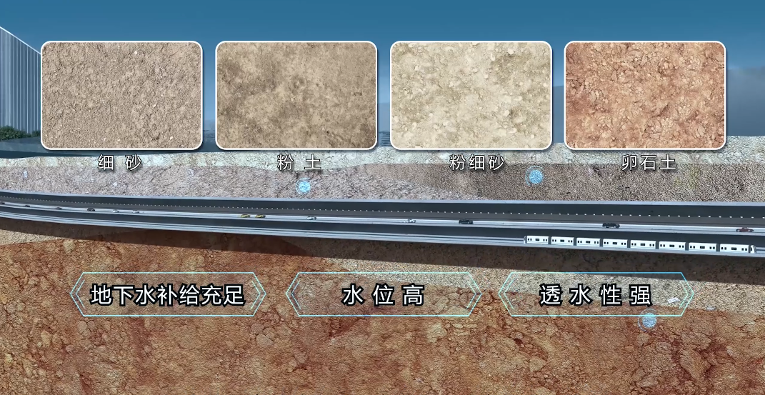 盾构机穿越地层圆砾土及卵石土层占比达80%,涉及的砂性地层具有一定透水性,承载力差。为此,项目团队对盾构机尤其是刀盘进行了针对性改制,加强地质超前探测,操纵盾构机成功穿越全断面超复杂卵石地层。