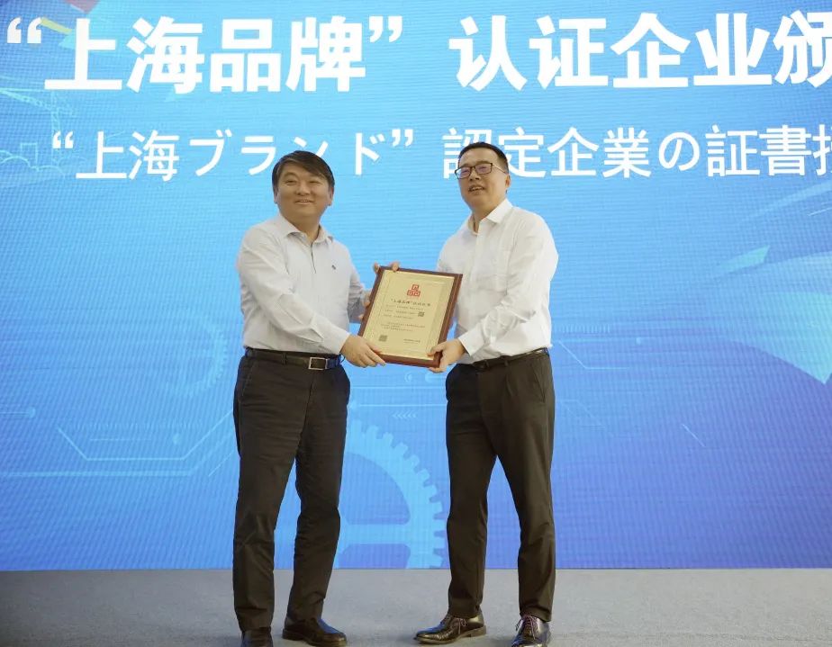 活动中,周文波总裁为隧道股份上海路桥颁授“上海品牌”证书。