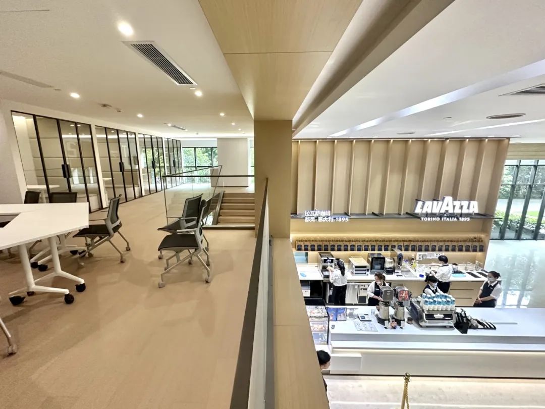 在咖啡水吧区,隧道股份引进意大利咖啡品牌LAVAZZA,为职工提供各类饮品和餐点。午休时间,找一本好书在舒适的卡座上静静翻阅,即可享受繁忙工作之余的小憩时光。