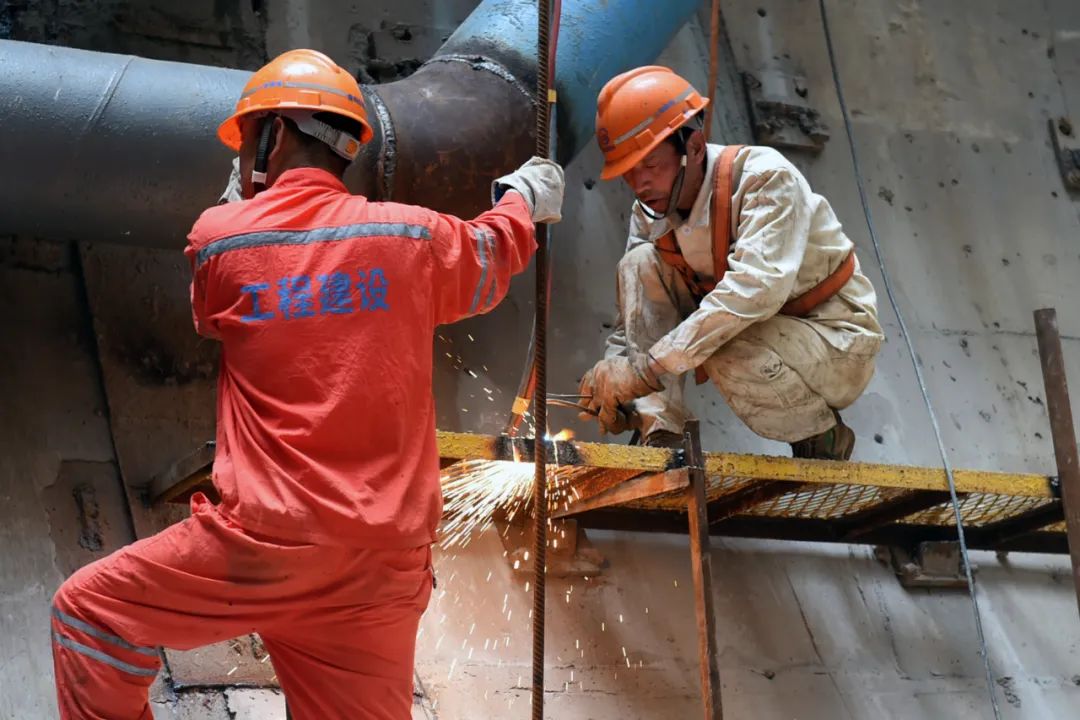 乘坐电梯到达作业层后,记者发现工作人员远比从上而下看到的要多,他们或“藏”于机器设备的缝隙中忙着安装,或在更深处的隧道里工作。