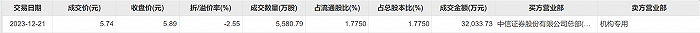 12月21日,隧道股份今日大宗交易成交5580.79万股,成交额3.2亿元,占当日总成交额的42.05%,成交价5.74元,较市场收盘价折价2.55%。