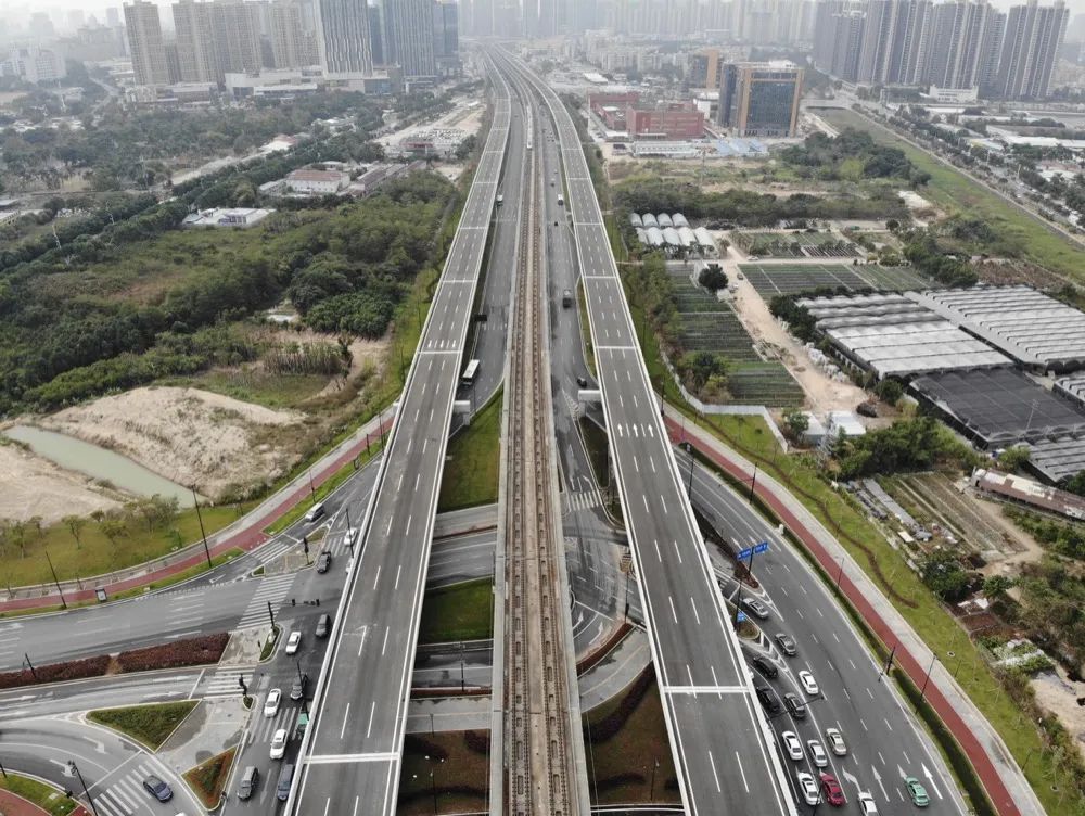 珠海市金琴快线工程是连通深中通道、深珠通道、港珠澳大桥三大跨江通道的纵向联络线,构成港深中珠澳“圈”型都市区。金琴快线是珠海第一条全线没有设置红绿灯的市政快速干道,主线桥梁采用双向6车道,设计时速为60km/h,地面辅道采用双向4车道。隧道股份上海路桥承建了金琴快线工程(港湾大道~梅华立交)T2 标工程,建设过程中成功运用“分段围蔽、区块施工”的方法、采取“盖梁骨架钢筋整体吊装”的施工方案,确保了涉铁施工安全性,显著提高了施工效率和效益,进一步提速珠海构建粤港澳三地合作新模式。