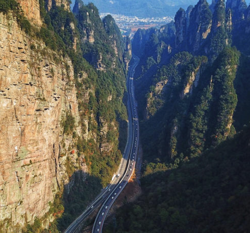 武陵山大道位于湖南省张家界市,是连接市区与武陵源核心景区的重要通道,路线全长约20.09公里,主线改造前为双向2车道二级公路,本工程将其拓宽改建为一级公路。在工程设计中,隧道股份城建设计集团首次建立并示范应用了自然遗产保护核心区绿色景观道路成套建造技术,优化并提升原规划方案,环境影响、工程投资最小化,满足联合国教科文组织的国家自然遗产保护核心区环保标准要求。项目创新多项改扩建分离技术,高效利用原线老路,实现自然遗产环境中工程实施量最小化。