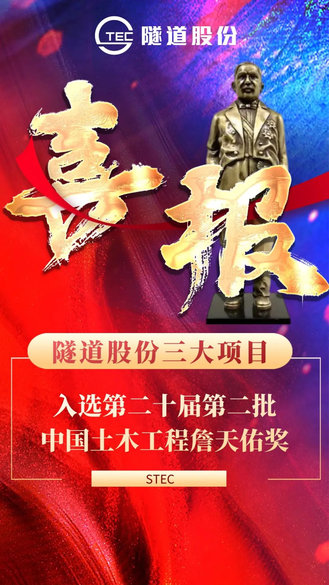 1月26日,中国土木工程学会公布第二十届第二批中国土木工程詹天佑奖入选工程名单。隧道股份参与建设的武汉三阳路越江隧道、无锡地铁3号线一期工程、苏州中心项目胜利入选这一国内土木领域科技创新最高奖项,涉及轨道交通、越江隧道与大型建筑三大领域!
