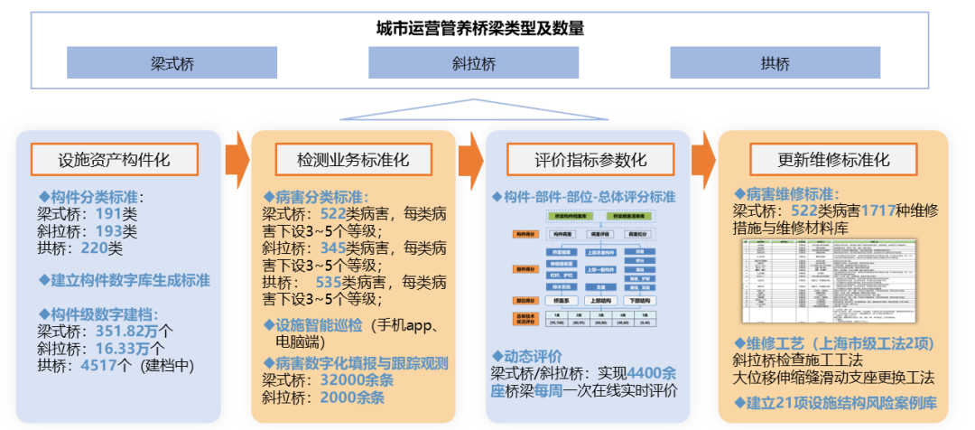 目前,这套基于桥梁构件病害数据档案的桥梁动态管理系统,已于隧道股份城市运营所管养的4600多座桥梁100%全覆盖应用,为超大城市治理提供解决方案,保障桥梁、隧道等城市生命线安全运行,提升韧性城市建设成效。