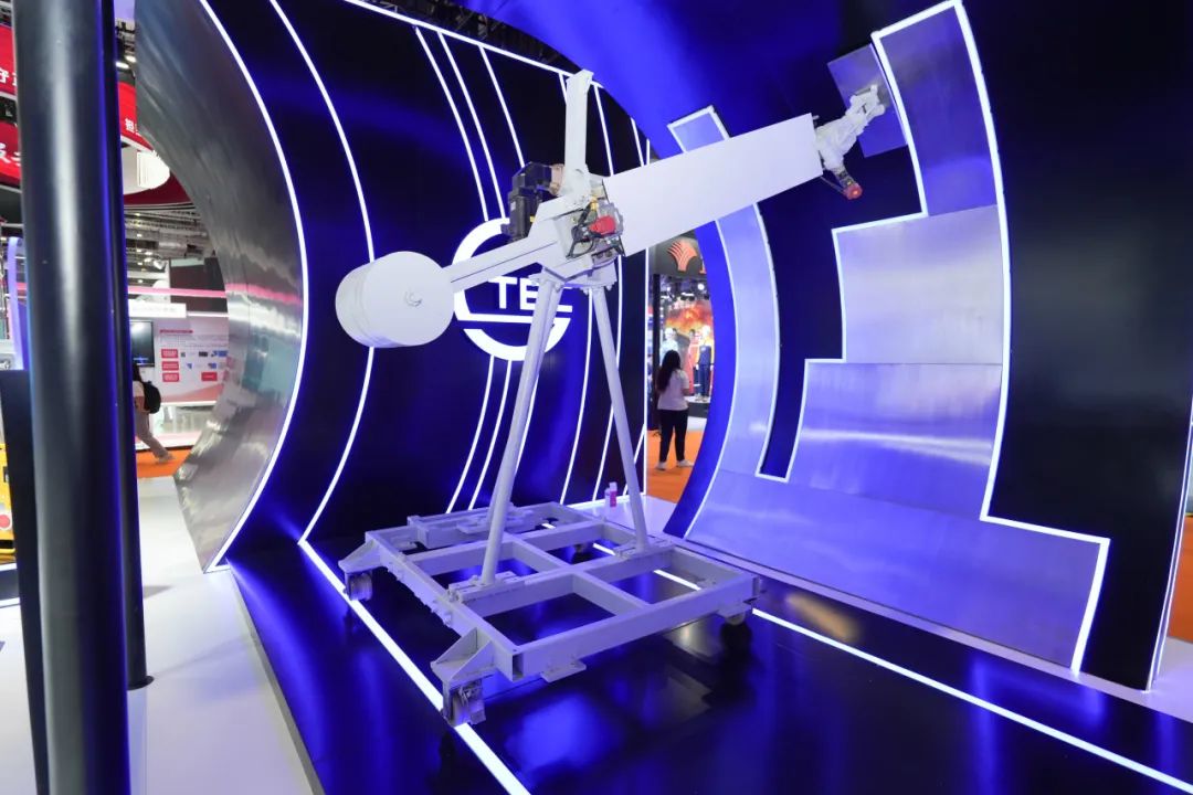 在狭小的隧道内部,如何高效、快捷、安全地对隧道结构进行加固?在本届展会上,隧道股份城盾隧安自主研发的“回转式钢环机械臂”首度亮相。该设备能够采用“机械手”对钢内衬片进行自动抓取、自动拼接,全过程只需技术人员远程“遥控作业”,不仅大幅减少了隧道修复维护的人力消耗,更能提升作业人员的安全系数,适用于多种不同应用场景。