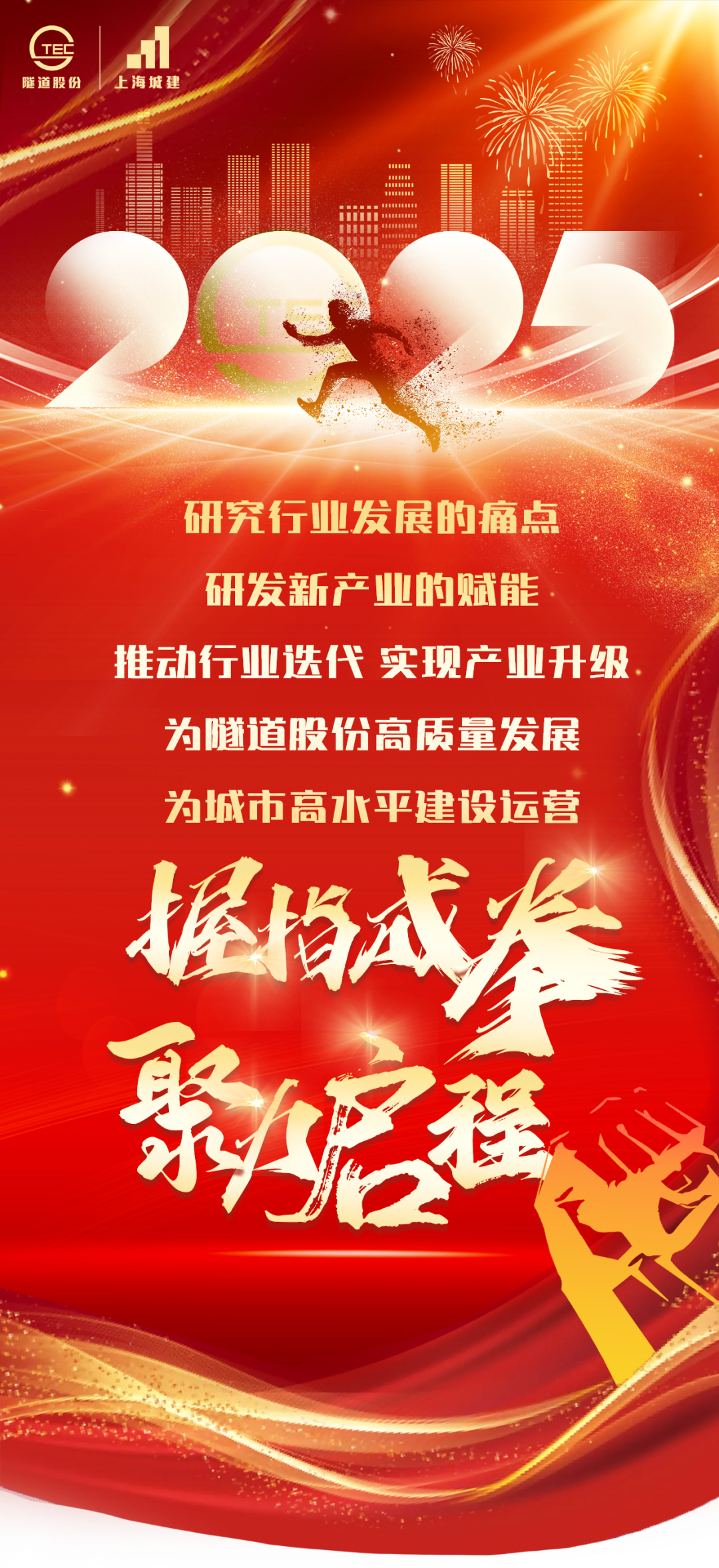 2025年,隧道股份全体干部职工要围绕城市建设运营全生命周期管理,研究行业发展的痛点、研发新产业的赋能,推动行业迭代、实现产业升级。要让“数字化”、“绿色化”成为推进产业升级的澎湃动能和生态底色,充分发挥隧道股份应用场景广泛多元的独特优势,加速“数绿”融合,不断释放传统产业的生机活力、持续培育新兴产业的增长动能,为隧道股份下一个五年的高质量发展打开新局面、凝聚新动力。