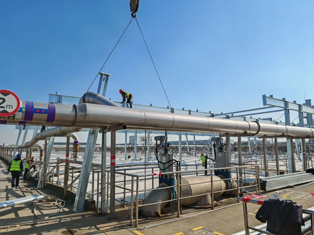 在绿色能源领域,隧道股份上海能建承建的白龙港污水处理厂分布式光伏发电项目吹响开工集结号。该项目根据白龙港污水处理厂现状建(构)筑物的布置特点,利用水池构筑物上部空间建设分布式光伏设施。目前正处于支架及光伏组件安装阶段,建成后将与现有的沼气热电联产、水源热泵等系统配合,预计每年可减少二氧化碳排放量3000余吨,有效推动污水厂低碳化建设。