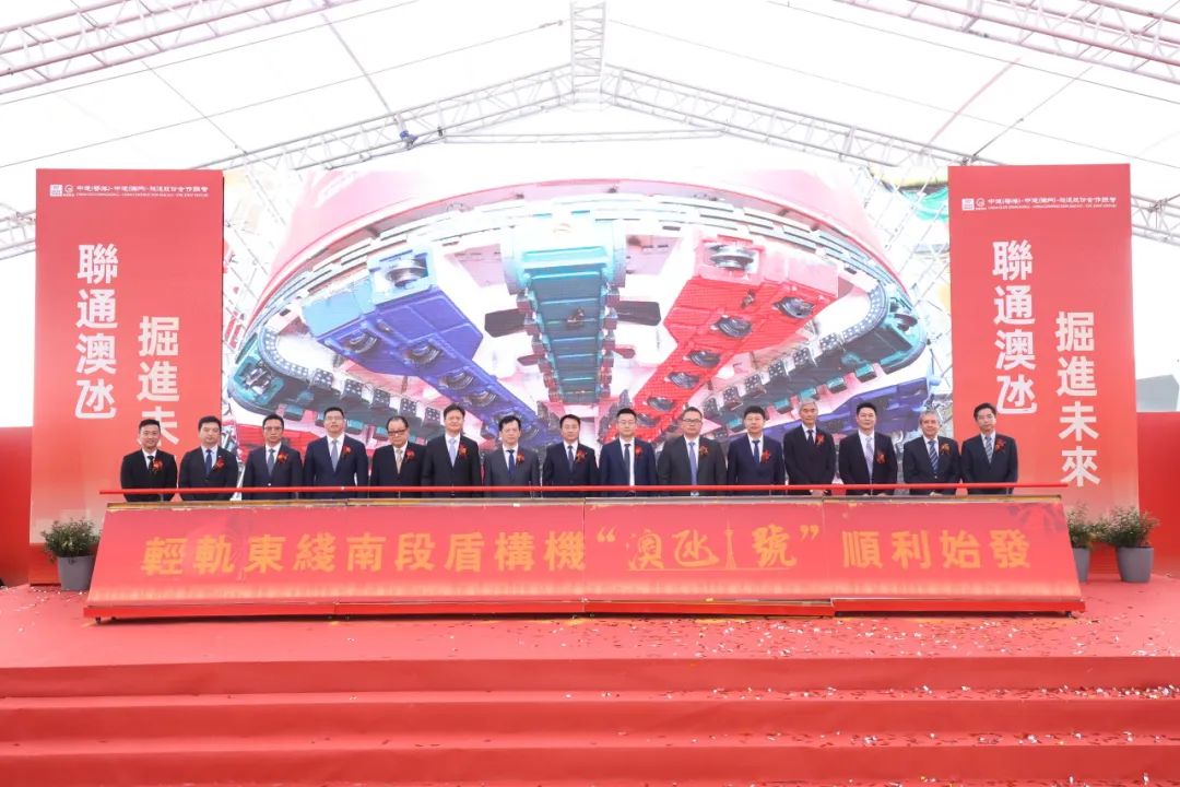澳门特别行政区政府公共建设局林炜浩局长、黄光裕处长,中国建筑国际集团高级副总裁张杰,隧道股份副总裁李波及隧道股份城建国际、上海隧道相关领导出席始发仪式。
