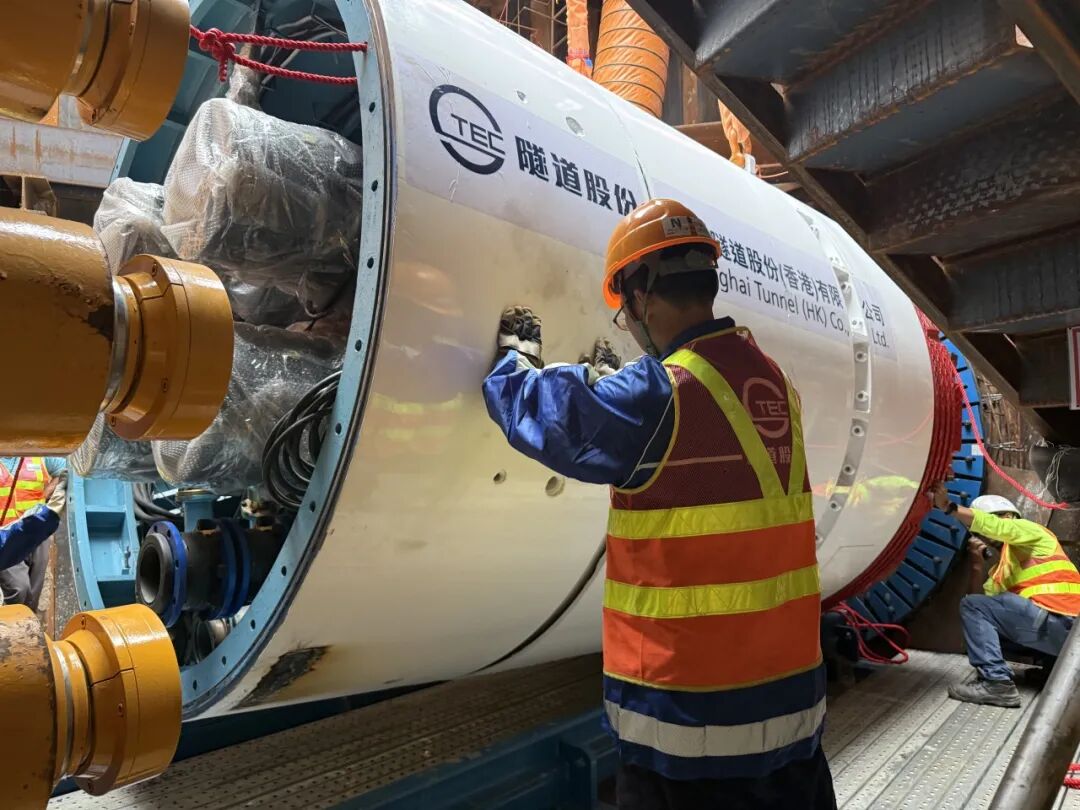 香港黃大仙雨水排放系统改善工程顶管直径为2.1米。 隧道股份 城建国际项目团队将驾驭这台小型顶管穿越密集城市建筑与道路,完成高精度、低扰动的掘进施工任务。项目顶进长度约84米,隧道埋深约10米。整个项目将由4台顶管装备接续施工,顶管隧道总长将超1500米。