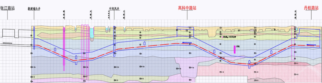 高科中路站~丹桂路站区间盾构机2.1米近距离下穿运营地铁2号线,隧道断面内存在⑥号老黄土和⑦号承压水层。