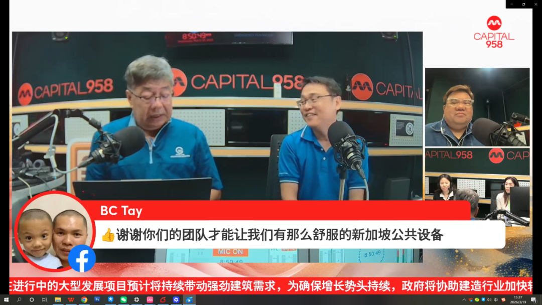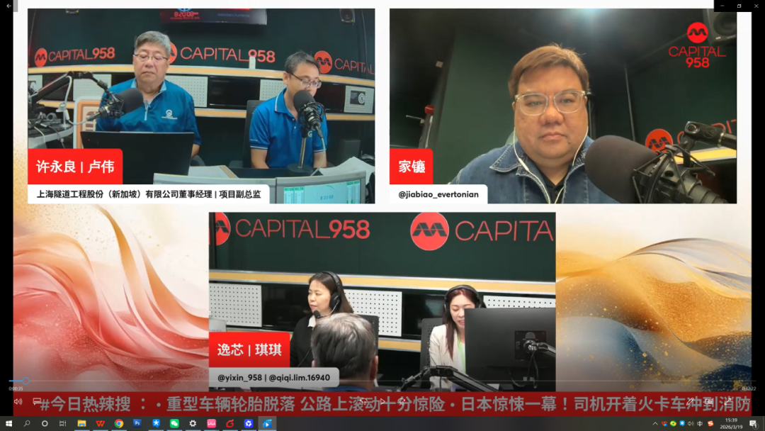 3月18日,隧道股份城建国际新加坡区域中心做客新加坡新传媒电台FM95.8早新闻,在《城市早点名》节目中,围绕STEC深耕新加坡市场30年的发展历程,分享隧道人在推动狮城建筑业向智能化、绿色化转型,服务新加坡城市基础设施高质量建设等方面的探索与实践。