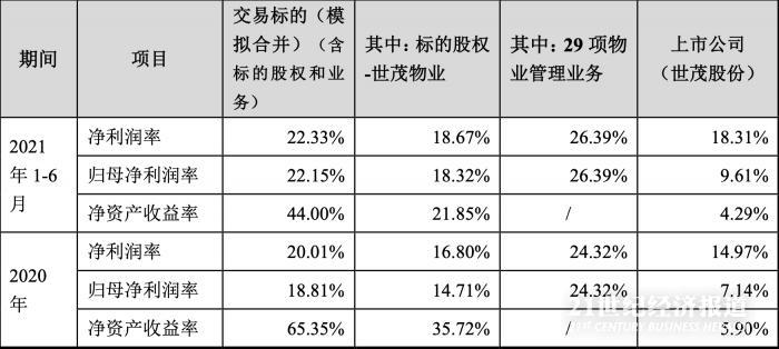 此外,关于上交所对此次交易是否存在转移优质资产与利益输送的问询,世茂股份坦承,交易标的的净利润率略高于世茂股份,但这是轻资产与重资产业务的盈利差别;交易标的的毛利率也高于世茂服务,这是由于不同的细分领域所导致的。近年来,交易标的的运营收益也是逐年递增的。