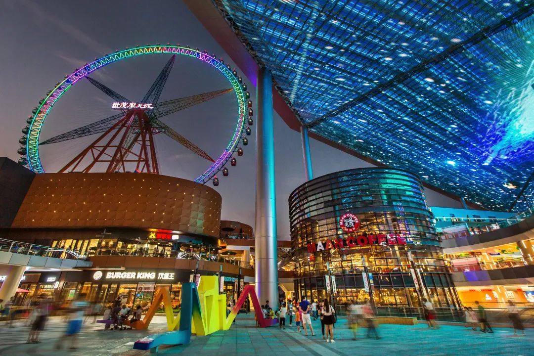 厦门集美世茂广场中庭大面积天窗,保证室内充足光线;同时通过设置内遮阳及彩釉点,又有效保证了中庭温度适宜,极大地减少了商场的能耗,注入环保设计理念。