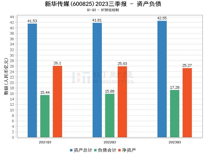 从资产负债方面来看,新华传媒2023年三季度的总资产为42.55亿元,相比上年度末的39.66亿元有所增长。负债合计为17.28亿元,相比上年度末的14.67亿元也有所上升。净资产为25.27亿元,相比上年度末的24.99亿元略有增长。资产负债率为40.6%,相比上年度末的36.99%有所上升。这表明公司的负债水平有所增加,但总体上,公司的资产负债状况保持稳定。