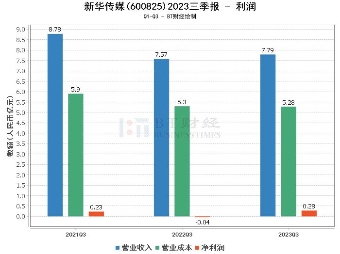 在利润方面,新华传媒2023年三季度的营业收入为7.79亿元,相比上年同期的7.57亿元有所增长。营业成本为5.28亿元,相比上年同期的5.3亿元略有下降。公司的毛利率为32.23%,相比上年同期的30.01%有所上升。净利润为2822.14万元,相比上年同期的-413.86万元,公司已经成功扭亏为盈。这表明公司的盈利能力有所提升。