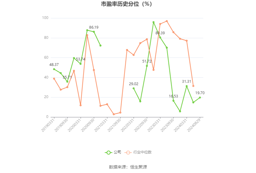 市盈率为负时,不显示当期分位数,会导致折线图中断。