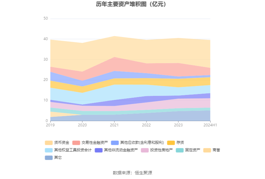 资产重大变化方面,截至2024年上半年末,公司交易性金融资产较上年末减少46.63%,占公司总资产比重下降7.35个百分点;货币资金较上年末增加11.09%,占公司总资产比重上升4.20个百分点;其他非流动金融资产较上年末增加64.09%,占公司总资产比重上升2.57个百分点;使用权资产较上年末减少14.79%,占公司总资产比重下降0.52个百分点。