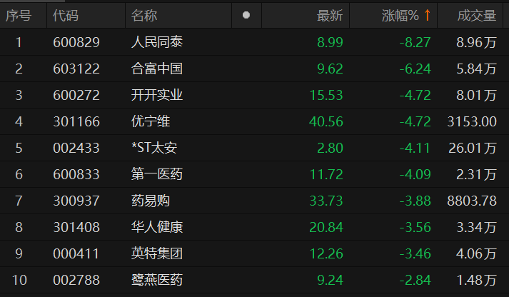 8月21日,医药商业板块走低,截至9时35分,人民同泰跌超8%,合富中国、第一医药等跟跌。