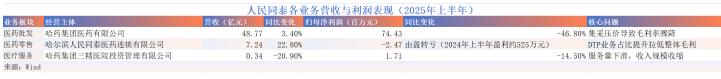 因此,该板块的毛利额同比减少6479万元,导致 人民同泰 这项业务“由盈转亏”,上半年净亏损247万元,而2023年同期净利润高达3236万元。