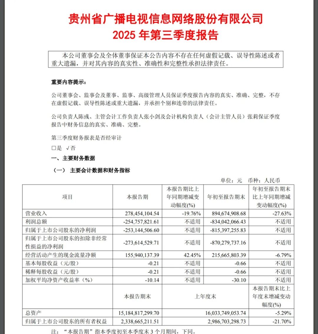 昨日,贵广网络、广西广电网络、陕西广电网络相继披露了2025年三季度报告。