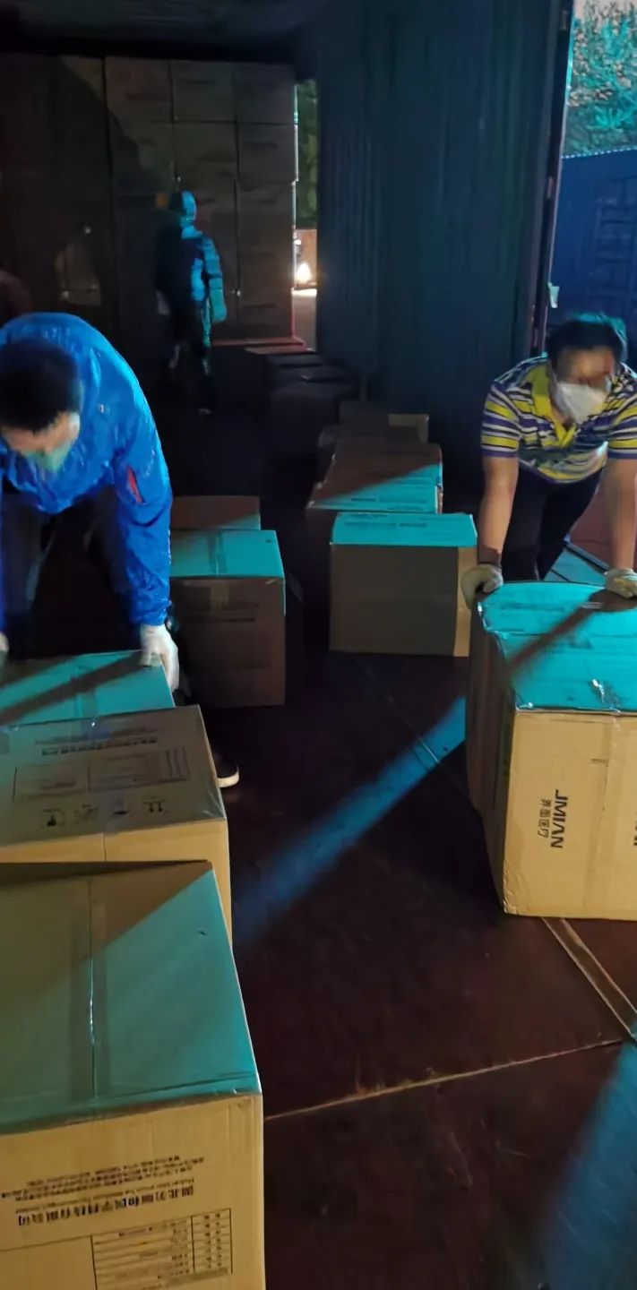 突击队中党员干部占一半,队员最高年龄59岁,女性7名。在克服居委“关卡”、家人突发情况、个人防护等困难后,截至发稿,三天内共计42人参与支援活动,人均装卸400箱,人均奋战16小时。这里有照顾完家中刚脱离危险的父亲的志愿者,有为防疫尽一份力的“巾帼英雄”……他们团结一心,众志成城,冲锋在最前线。