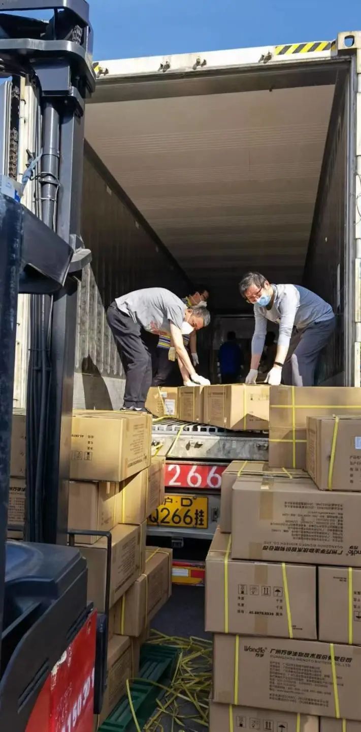 截至4月10日,现代物流已派出支援一线团队近80余人次,累计协助完成装卸约30余车次的口罩、抗原自测试剂的保供物资。同时,随着全国物资供应的增加,第一医药物流中心随时面临“爆仓”风险,在集团统一调配下,保供任务的战略部署也相应地做出了计划性的调整,将现代物流所属全方物流基地列为全国援沪防疫物资的临时存放点和分流点,以帮助第一医药仓库缓解仓储压力。目前,首批25辆满载N95口罩的货运车已于4月9日下午抵达全方物流基地,现已顺利卸货,作为全国援沪防疫物资的临时存放点和分流点的全方物流基地顺利运转。