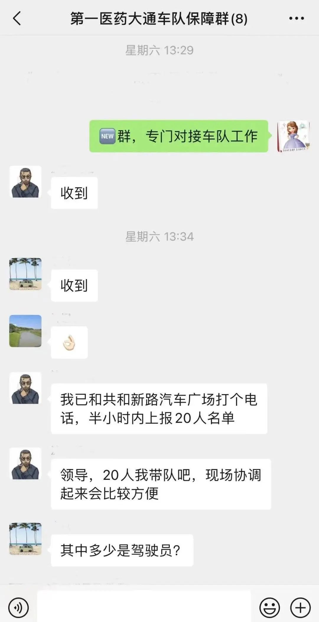 百联汽车与车辆提供方大通汽车联系,确定驾驶保供车辆的驾照条件,迅速对百联汽车共和新路3550号园区及乾通投资相关园区内值班值守人员中符合资质要求的进行排摸、动员,并发出突击队招募令。
