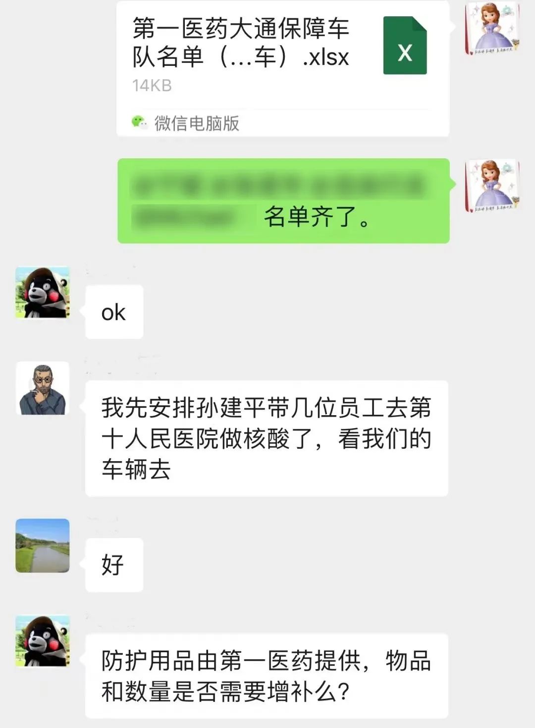 一个由物贸股份党委、百联汽车党委重要骨干组成的物贸股份保障服务车队微信工作群组建起来,就集团的医药保供任务进行部署,明确分工,分头落实。