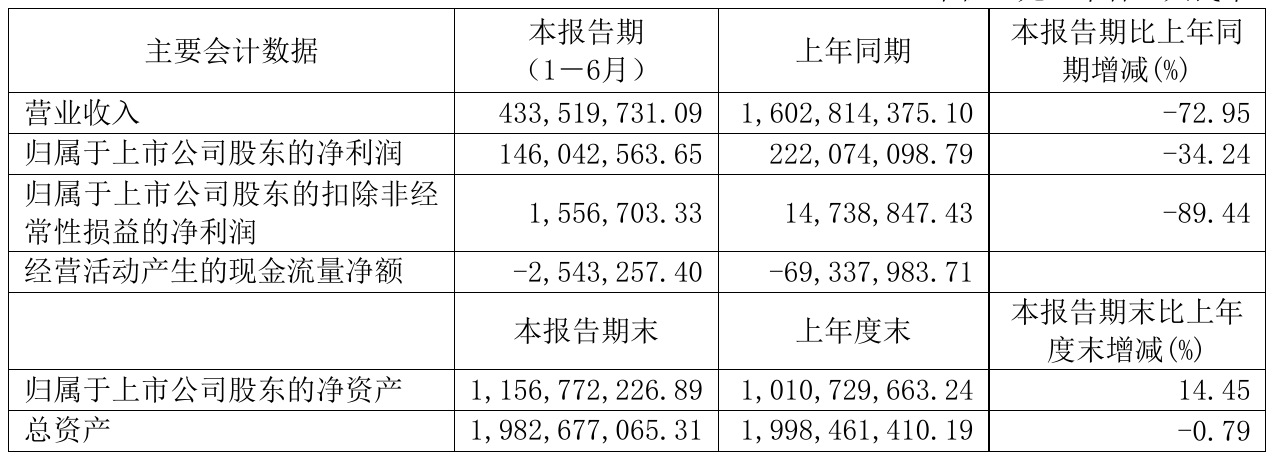 8月26日,上海易连(600836)近日发布2021年半年度报告,报告期内营业收入433,519,731.09元,同比减少72.95%;净利146,042,563.65元,同比净利减少34.24%。