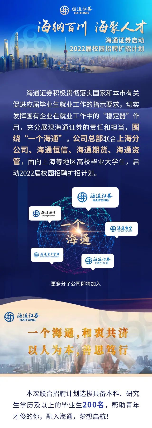 海纳百川,海聚人才——海通证券启动2022届校园招聘扩招计划