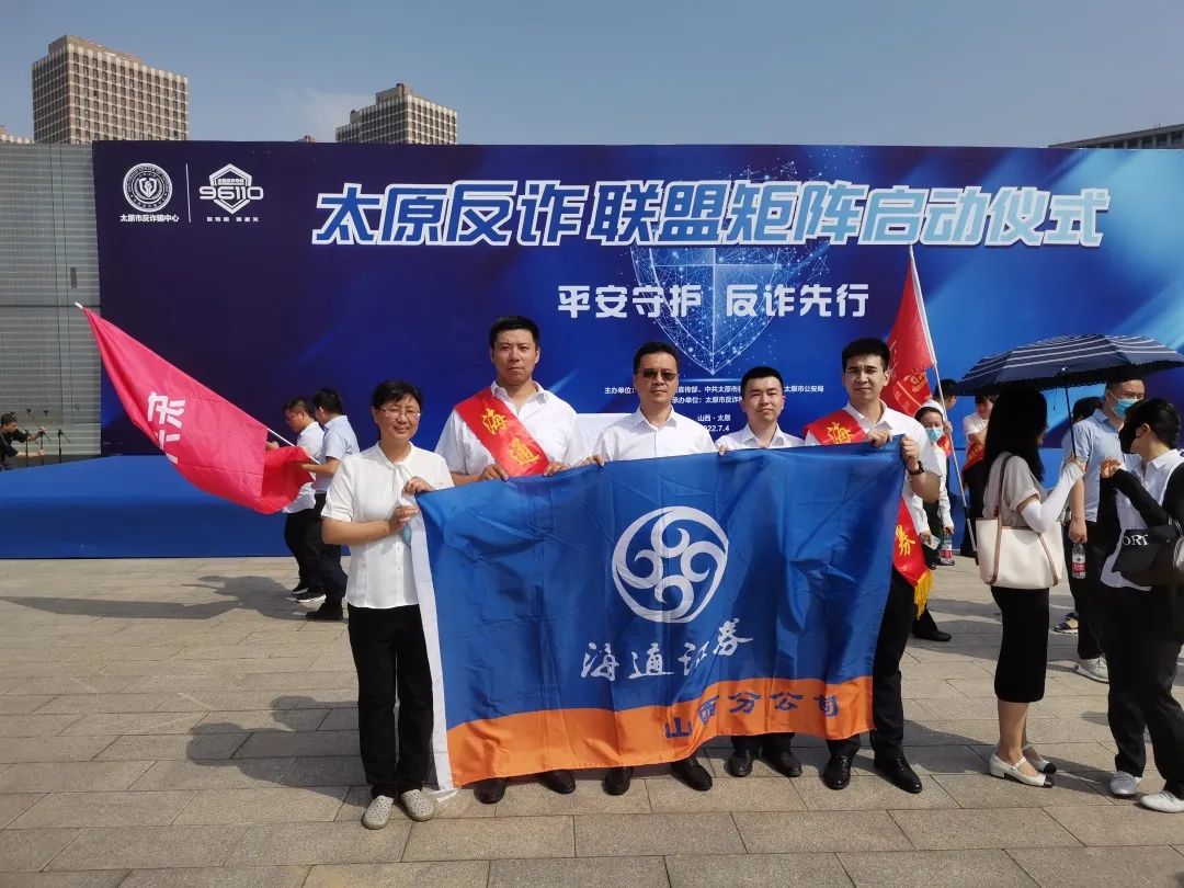 为助力太原市打击治理电信网络新型违法犯罪,海通证券山西分公司积极加盟反诈联盟证券方阵,与各行业方阵共同开展宣传活动。