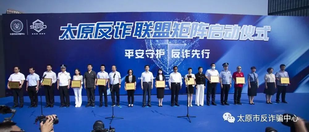 为扎实推进太原市打击治理电信网络新型违法犯罪工作,全力构建“全民反诈,全社会反诈”新格局,7月4日上午,由太原市委宣传部、市委政法委、市公安局联合主办,太原市反诈骗中心承办的“平安守护反诈先行太原市反诈联盟矩阵启动仪式”在太原煤炭交易中心庆典广场举行。