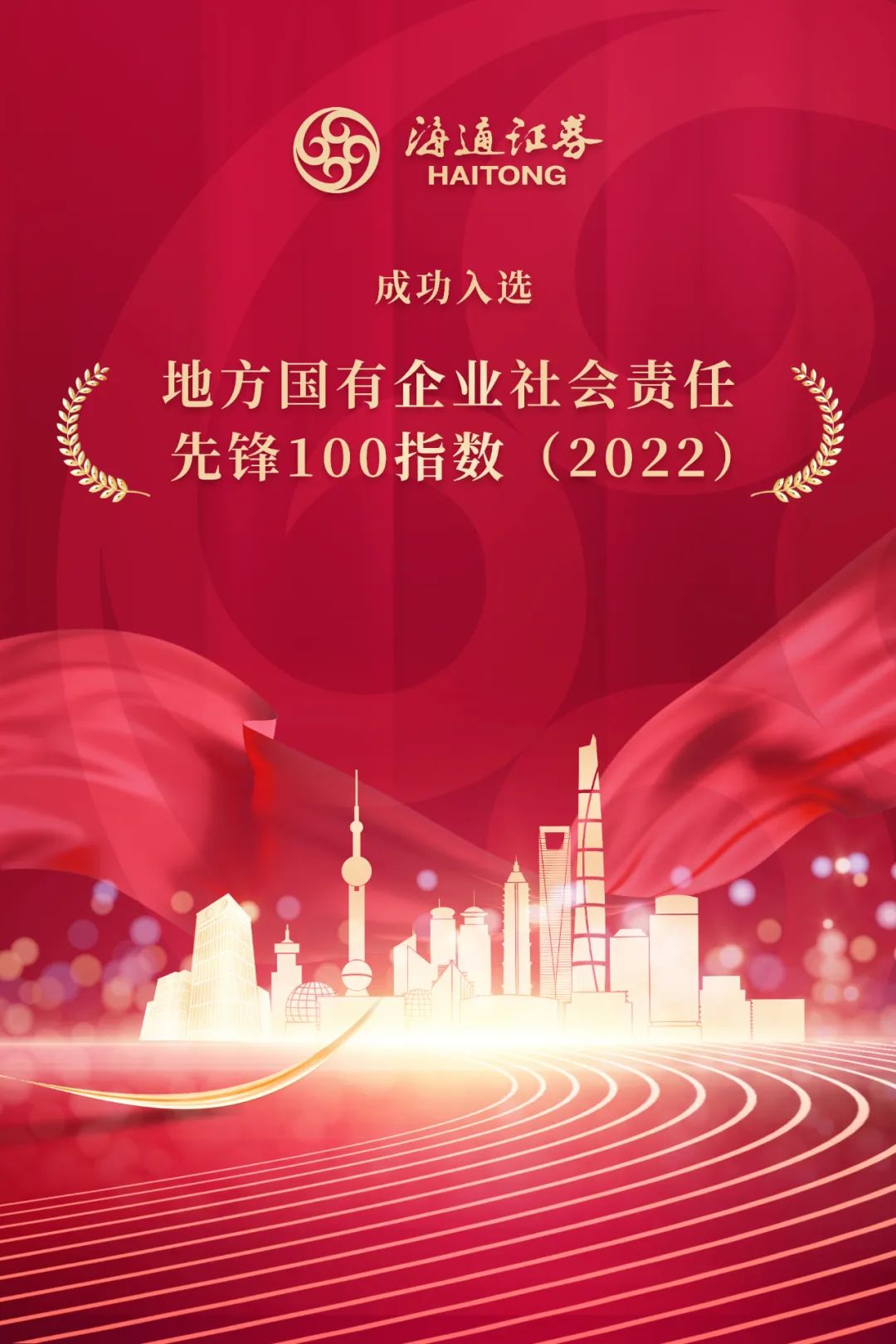 会上发布了地方国有企业社会责任·先锋100指数(2022),海通证券成功入选。地方国有企业社会责任·先锋100指数由国务院国资委社会责任局指导、责任云研究院执行,以地方国有企业为研究对象,从调查问卷、调研访谈、企业社会责任报告和第三方平台等方面收集国有企业社会责任相关绩效与信息,对企业社会责任发展水平进行整体评价,从中选取指数排名靠前的企业构成先锋100指数。