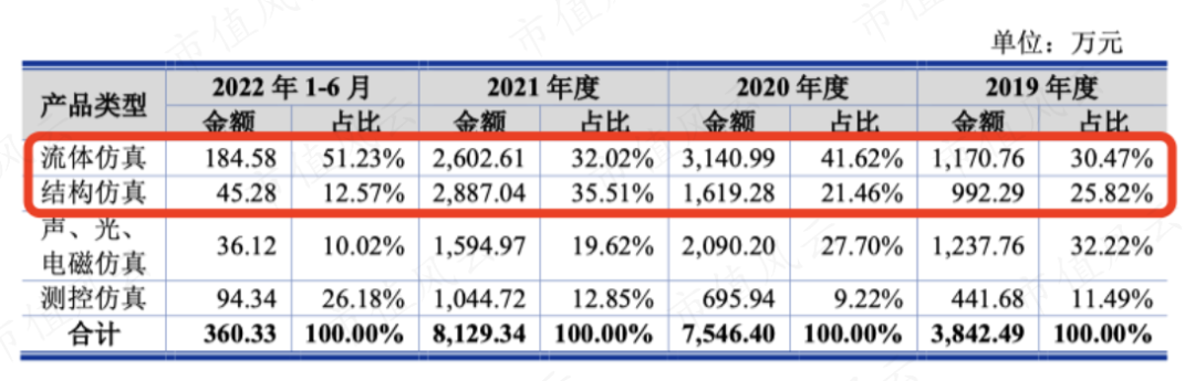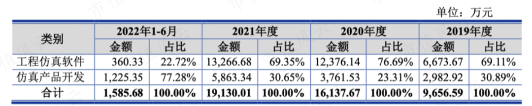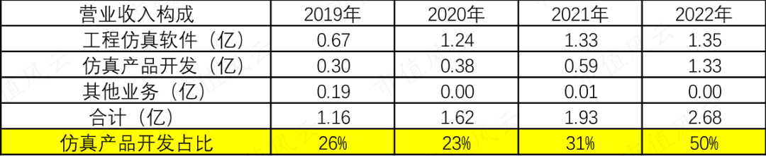 2019年以来,仿真产品的收入占比越来越高,2022年两块业务已经平分秋色了。
