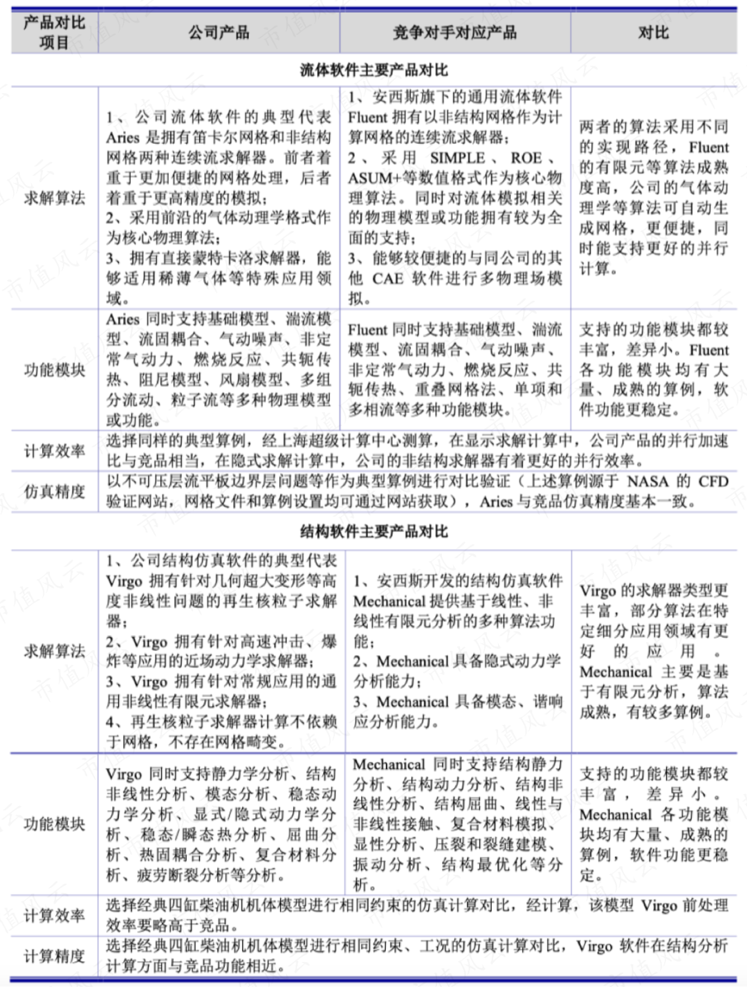 相应索辰科技的主要强项也是在流体、结构领域,产品与竞争对手相比具有一定先进性。