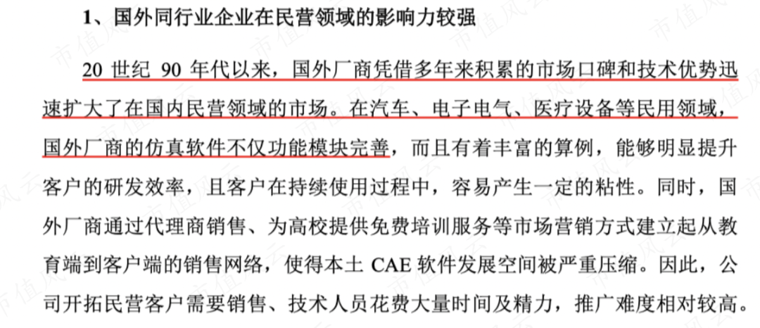 由于军工行业具备保密性、安全性等要求,不得不使用国有的CAE软件、成本高一点都无所谓,但在以成本为核心考量的市场化竞争中,索辰科技面临的困难会多得多。