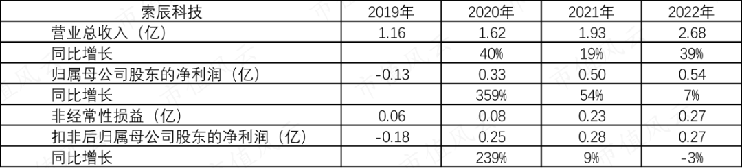 对比索辰科技2022年营业收入仅2.68亿,扣非净利润仅0.27亿。