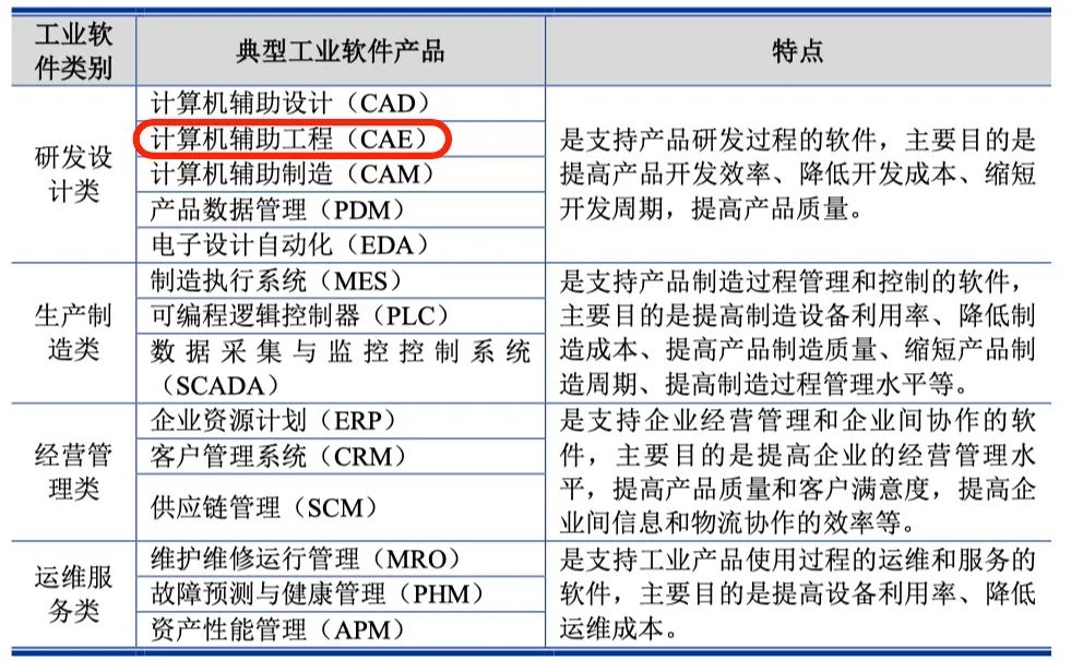 其中研发设计类软件包括:开发计算机辅助设计(CAD)、计算机辅助工程(CAE)、计算机辅助工艺计划(CAPP)、计算机辅助制造(CAM)、流程工艺仿真、电子设计自动化(EDA)、产品数据管理(PDM)等。