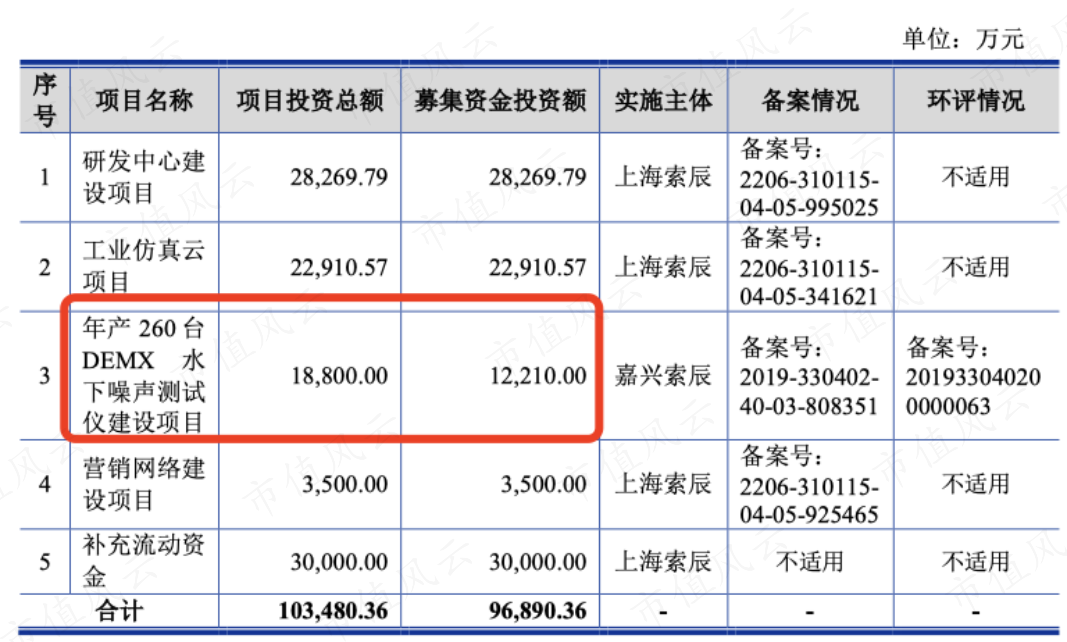 但有一个项目“年产260台DEMX水下噪声测试仪建设项目”明显一看就不太一样,属于硬件产品。