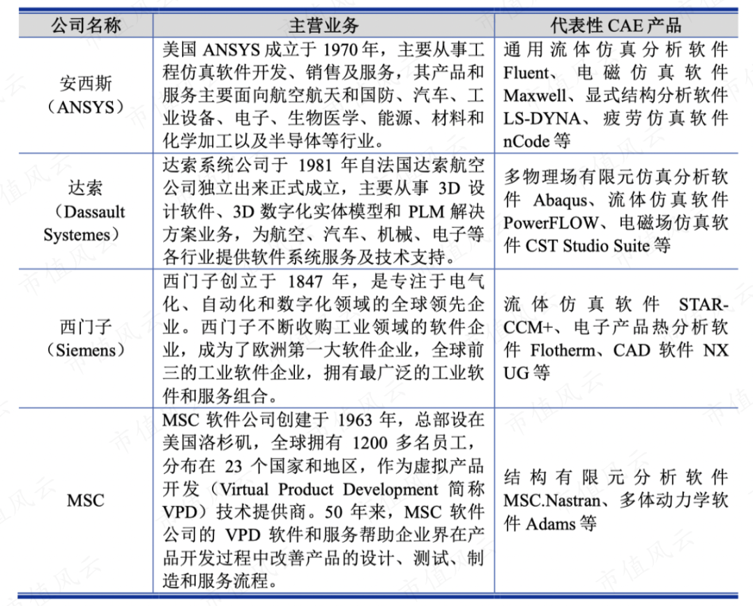 同时,安西斯、达索、西门子等企业在工业领域深耕数十年,通过持续的发展和并购,在工业软件领域形成了丰富的产品线,除CAE业务以外,还存在其他多种类型的业务,如CAD、EDA、PLM、MES等,能够满足用户多方位的研发、制造需求,覆盖领域广泛,产业协同效应明显。