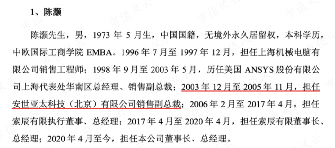 其实,索辰科技实际控制人陈灏也是从安世亚太出来的。