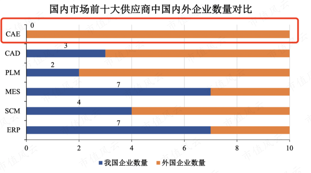 索辰科技所在工业设计类软件领域国产率仅5%,所在的CAE软件更是国外企业垄断程度最高的领域,国内市场前十大供应商全是国外的!