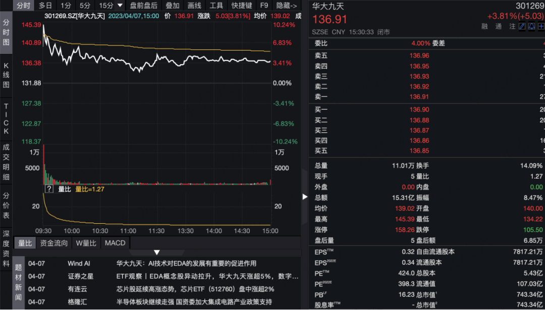 (华大九天市盈率400左右,wind数据)