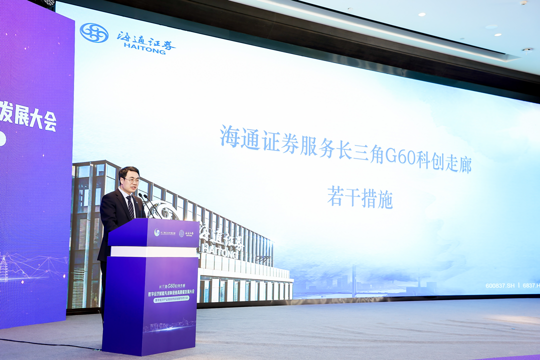 5月10日,在上海市经济和信息化委员会指导下,由海通证券与松江区人民政府共同主办,长三角G60科创走廊联席办、松江区经委、松江区科委联合承办,长三角开发区协同发展联盟、上海股权投资协会协办的长三角G60科创走廊数字经济赋能先进制造业高质量发展大会在松江举行。海通证券党委副书记、总经理李军,上海市经济和信息化委员会副主任张英,长三角G60科创走廊联席会议执行主席单位、松江区委常委、副区长周诚出席会议并致辞,松江区副区长刘福升参加会议并主持。