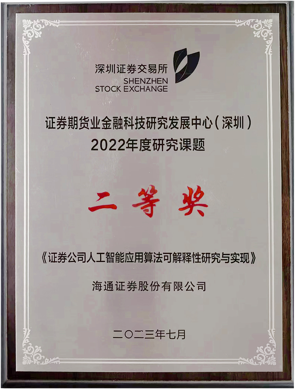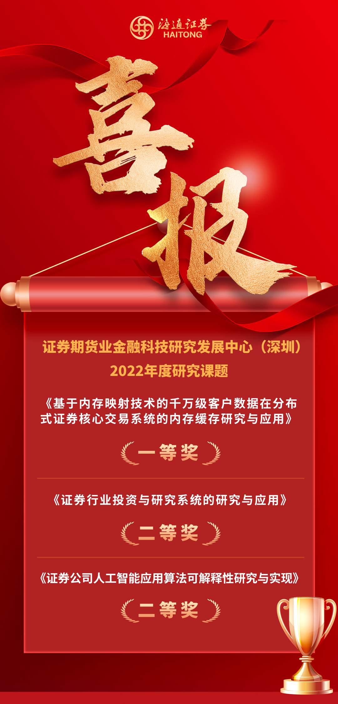 近日,证券期货业金融科技研究发展中心(深圳)公布了2022年度优秀课题,海通证券三项课题从122项参评的研究课题中脱颖而出,《基于内存映射技术的千万级客户数据在分布式证券核心交易系统的内存缓存研究与应用》荣获一等奖,《证券行业投资与研究系统的研究与应用》《证券公司人工智能应用算法可解释性研究与实现》荣获二等奖。继2021年度包揽一、二、三等奖后,公司2022年度奖项排名持续攀升。