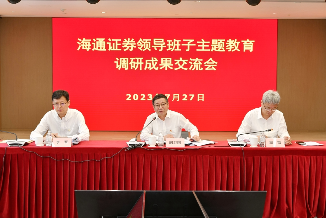 7月27日上午,海通证券召开领导班子主题教育调研成果交流会。公司党委书记、董事长周杰主持会议并讲话。市委第二十二巡回指导组组长胡卫国、市委主题教育调研组成员等同志莅临指导。